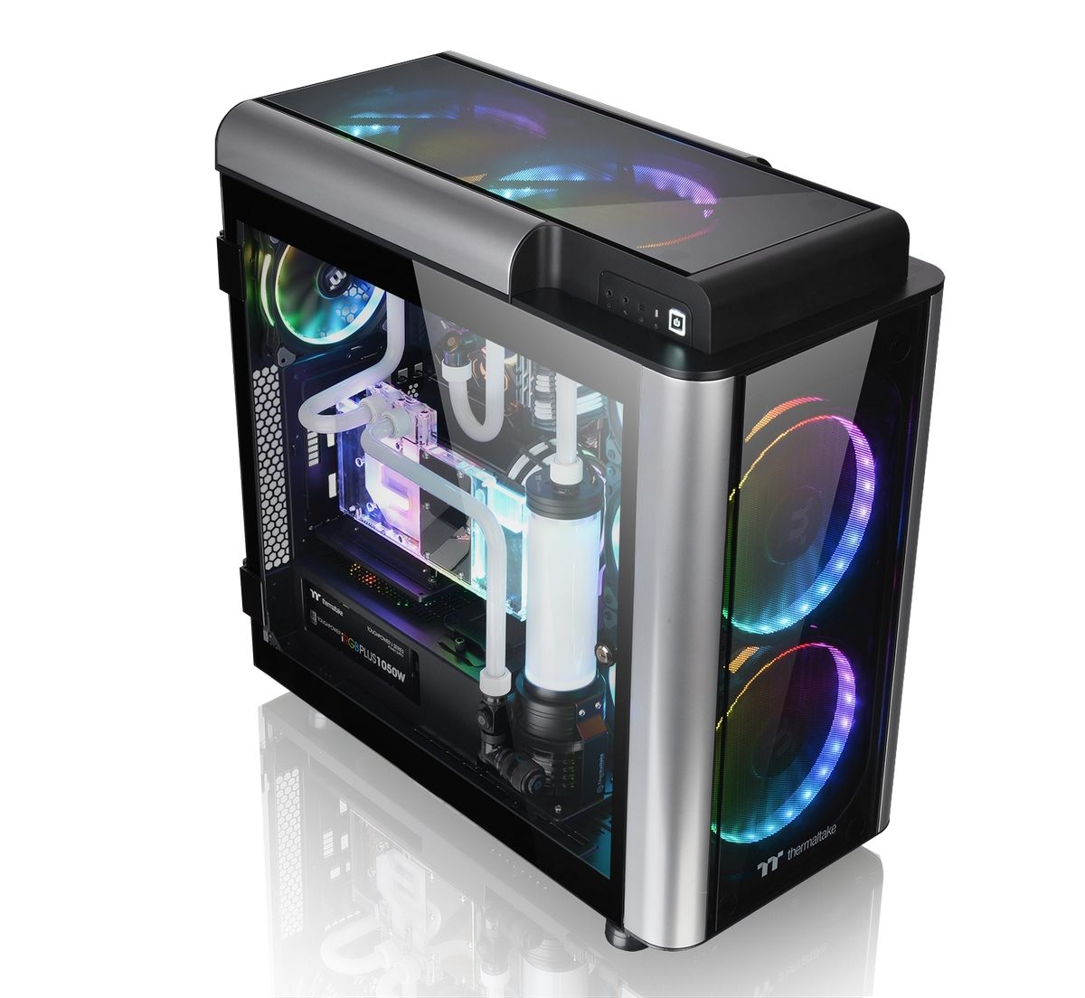 A Level 20 GT Edition négy darab, 5 mm vastag, kinyitható edzett üvegablakkal lett felszerelve. A kibővített ablakszerkezet lehetővé teszi a felhasználók számára, hogy teljes mértékben belelássanak és megcsodálják a folyadékhűtési rendszer összes összetevőjét. Az elismert ikonikus design koncepcióval a Level 20 GT USB C csatlakozóval is rendelkezik a felső panelen, a függőlegesen elhelyezhetünk benne egy radiátort, amely akár 420 mm hosszú hűtőrendszert is képes fogadni. A csúcskategóriás alaplapokat is támogatja az E-ATX méretig és szabadalmaztatott elforgatható PCI-E konzolra kettő, vagy három GPU csatlakoztatható. A figyelemre méltó hűtési megoldással a Level 20 GT maximalizálja a légáramlást két beépített 140 mm-es Riing LED Blue ventilátorral, és akár 200 mm-es előlapi és felső ventilátorokat is építhetünk bele. A Level 20 GT a páratlan esztétika és határtalan lehetőség kombinációja.